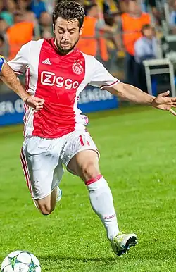 On 16 July 2015, Younes signed a three-year contract for Dutch club Ajax, until 30 June 2018, with an option for an additional year for €2,5 million.[5] After an injury, which kept him out for the start of the championship, he made his debut as a starter against Groningen (2–0) on 26 September.[6] The following week he scored his first goal for Ajax, against PSV in a 1–2 defeat.[7] Over the weeks, the player found continuity and concluded his first season with eight goals and nine assists in 35 total games. On 20 October 2016, he scored his first goal in a UEFA competition by scoring against Celta Vigo (2–2) in the UEFA Europa League.[8] At the end of the season he played in the 2017 UEFA Europa League final lost to Manchester United.[9] Younes was the player with the most dribbles in the competition.[10]
