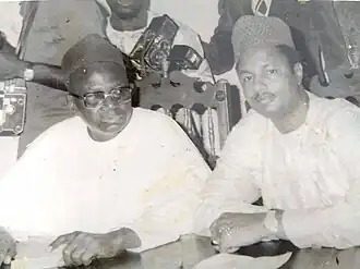 Mallam Aminu Kano GCON[1] (9 August 1920 — 17 April 1983) was a Nigerian politician, teacher, poet, playwright, and trade unionist from Kano. One of the most prominent figures in Nigeria's independence movement and post-independence political history, he was known for his opposition to colonialism, the dominance of traditional rulers, and the social inequalities in Northern Nigeria. He was a founding figure of the Northern Elements Progressive Union (NEPU) and later led the People's Redemption Party (PRP), both of which were socialist parties which advocated for the emancipation of the talakawa (commoners) in Nigeria.[2][3][4][5][6]