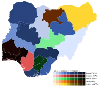 - ^ a b c d e f g h i j k Oyediran, Oyeleye (1981). The Nigerian 1979 elections. Internet Archive. Illupeju, Lagos [Nigeria] : Macmillan Nigeria. ISBN 978-0-333-31786-0.