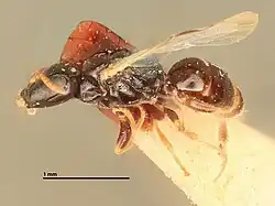 2. ^ Sann, M.; Niehuis, O.; Peters, R. S.; Mayer, C.; Kozlov, A.; Podsiadlowski, L.; Bank, S.; Meusemann, K.; Misof, B.; Bleidorn, C.; Ohl, M. (2018). "Phylogenomic analysis of Apoidea sheds new light on the sister group of bees". BMC Evolutionary Biology. 18 (71): 71. Bibcode:2018BMCEE..18...71S. doi:10.1186/s12862-018-1155-8. PMC 5960199. PMID 29776336.