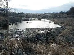 Below Meadow Springs Country Club, several fish species have been spotted. In some years, these can include salmon[7] and trout,[5] however summer water temperatures, which can exceed 74 °F (23 °C), can be lethal to fish populations. The creek also serves as an oasis with heightened amounts of vegetation around it. The basin around the creek serves as a home to hares, quail and beavers.[8] River otters[8] have been spotted in the creek.