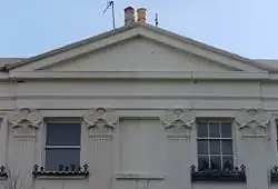 Nearby Montpelier Crescent was Wilds junior's largest-scale independent work.[39] Built between 1843 and 1847[40] in the Seven Dials area, whose development had been stimulated by the recent opening of the nearby railway station, it was laid out as a curving terrace of mansions, each divided into two dwellings. Some had pilasters decorated with ammonite capitals.[39] The section of the crescent now numbered 7–31 is listed at Grade II*;[41] the other houses are of a different design and are newer:[19][42] they date from around 1855 and are listed at Grade II in four separate parts.[43][44][45][46]