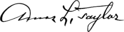 He was a member of the American Bar Association, as well as Gamma Eta Gamma and the Freemasons. Taylor was one of the founders of Phi Gamma Delta at Brown University,[6] and an officer and life member of The Bostonian Society.[7] He was a Unitarian.