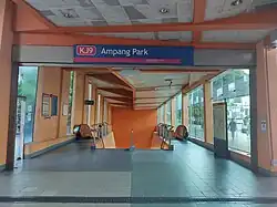 This LRT station, despite sharing the same name, is not integrated and not to be confused with the separate Ampang Park MRT station, which is serviced by the MRT Putrajaya Line instead. Paid zone-to-paid zone integration was once proposed but not constructed at the moment. Passengers are required to tap out from one station, exit the station at ground level and walk along a covered walkway to the entrance of the other station to transfer between the lines.