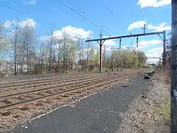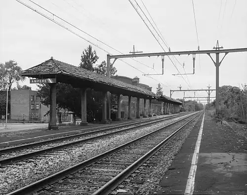 Ampere, formerly known as The Crescent, is a defunct stop on New Jersey Transit's Montclair Branch (current-day Montclair–Boonton Line) in the city of East Orange, Essex County, New Jersey, United States. A station was first built there in 1890 to service to new Crocker Wheeler plant in the district. The stop was named in honor of André-Marie Ampère, a pioneer in electrodynamics and reconstructed as a new Renaissance Revival station in 1908. Ampere was the second stop on the branch west of Newark Broad Street Station until 1984, when the Roseville Avenue station was closed. In June of that year, the station, along with 42 others, was entered into the National Register of Historic Places.[5] In 1986, after continuous deterioration, New Jersey Transit demolished the westbound shelter built in 1921. The agency discontinued rail service to Ampere on April 7, 1991. The entire station was demolished in 1995.