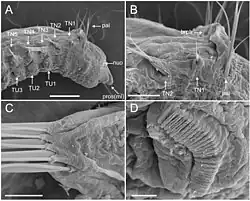 The worm has eyes both on its head and on cirri extending out of its anus and measures between 4โ5 mm (0.16โ0.20 in) in length.[4][5]