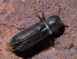 Amphicerus bicaudatus, known generally as the apple twig borer or grape cane borer, is a species of horned powder-post beetle in the family Bostrichidae.[1][2] It is a pest of cultivated orchard trees as well as grapes and other tree species.[3]