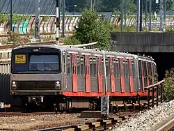 As of January 2016, the Amsterdam Metro system operates 90 electric multiple unit (EMU) trainsets.[49] All use standard-gauge track and run on a 750 V DC third rail electrification system.