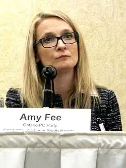 Amy Fee (born 1981 or 1982)[2] is a Canadian politician from Ontario. She was elected to the Legislative Assembly of Ontario in the 2018 provincial election[3] and represented the riding of Kitchener South—Hespeler as a member of the Progressive Conservative Party of Ontario from 2018 to 2022.