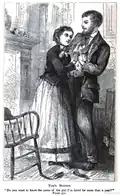 Later, Polly goes to the opera with Fanny and Tom. They happen to meet Mr. Sydney, a friend of the Shaws. Though Polly never plays up her looks and normally dresses simply, on this particular night she dresses up in Fanny’s borrowed finery so she can make an impression. Mr. Sydney and Tom both take notice of Polly, and, enjoying the attention, Polly "innocently" flirts with both of them. Mr. Sydney becomes attracted to Polly, and lonely Polly enjoys the attention and appreciates Mr. Sydney’s friendship. He begins to learn her routine and “coincidentally” runs into her and accompanies her during her walks to her students’ homes.
