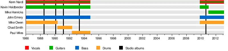 - Kenn Nardi – guitars, vocals (1986–1994, 2009–2013)