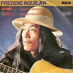"Anak" (lit. 'Child') is a Tagalog song written and performed by Filipino folk singer Freddie Aguilar. It made the finals for the inaugural 1978 Metropop Song Festival held in Manila. It became an international hit, and was translated into 51 languages.[2] The lyrics speak of Filipino family values.[3] The current copyright owner of the song is Star Music, a recording company owned and operated by the Philippine media conglomerate ABS-CBN Corporation.[4] It was produced by Celso Llarina of VST & Co, with an arrangement by D'Amarillo (Doming Amarillo). Tito Sotto was the executive producer for this song as well as its album of the same name.[5] It is the best-selling single by a Filipino artist of all time.[6][7][8][9]