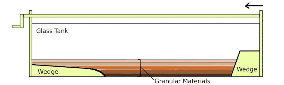The use of more complex compression machines substantially increases the number of simulations of compressional tectonics, including subduction, collision, lithospheric shortening, fracture formation, thrust and accretionary wedge. If the simulation only focuses on the upper crustal, the model is always built in the glass box (or two lateral glass walls) with a piston and/or wedges to supply forces to layers of granular materials (normally called sandbox). Depending on the different natural features, erosion (removal of top materials at a certain angle), décollement (inserted layers with low cohesion, normally glass microbeads), and any other parameters can put into the model, producing various results.[25]