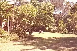 The formal homestead garden is approached through wrought iron gates hung on elaborately stuccoed brick gate posts set in a timber picket fence. The driveway and paths within this area are brick edged & guttered & were originally gravelled although they are now overgrown. There is an overgrown lawn tennis court and many superb trees, including Bunya pines (Araucaria bidwillii), silky oaks (Grevillea robusta), jacarandas (J.mimosifolia), orchid trees (Bauhinia x variegata cv.s),frangipanis (Plumeria rubra cv.s) & a Queensland bottle tree. The garden was sheltered from the prevailing winds by windbreaks of native olives & hedges of "Orange Honeysuckle" (Cape honeysuckle/tecoma (Tecomaria capensis)). Outlines of formal beds can still be seen in what are now lawns. The house is set on a hill overlooking what is called the "lagoon". This is a picturesque small lake which is a habitat for the many water birds which frequent the area. The lagoon & the area between it and the house are considered very important to the house's setting.[2][1]