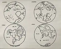 ![]() Anarres and Urras, as illustrated in The Dispossessed | |