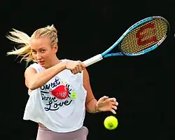 At the Dubai Championships, she beat 11th seed Madison Keys[38] and sixth seed and 2019 champion, Belinda Bencic to reach the quarterfinals of a WTA1000 tournament for the first time in her career.[39] She ended up losing to eventual finalist Barbora Krejčíková.[40] At the Miami Open, she was defeated in the first round by Ajla Tomljanović.[41]