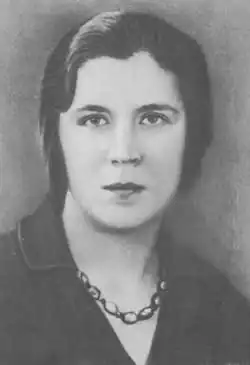 Anastasiya Biseniek was born in 1899 in the city of Dno, then part of the Russian Empire to a large Russian family; she had four brothers and three sisters. Her father, Aleksander Pavelovich Finogenov, worked at the Dno-1 Railway Station. In 1914 he was drafted into the Imperial Russian Army but was soon demobilized after he was injured during the Russian Civil War, after which he worked as a master shoemaker and repaired boots. After completing primary school Anastasiya worked at the rail station until 1914 when her father left for the army and arranged for her to move to Petrograd to work at a clothing factory. In 1917, just several days before the October Revolution, her lover who she had met while working in Petrograd was killed during a night patrol; he was a Bolshevik.[2][3]