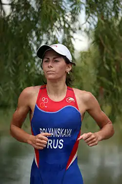Anastasiya Sergeyevna Polyanskaya, née Yatsenko (Russian: Анастасия Сергеевна Полянская Яценко; her first name is also transliterated as Anastasia by the ITU; born 5 February 1986 in Zhovti Vody)[1] is a professional Ukrainian and Russian triathlete, Russian Supersprint Champion of the year 2009[2] and 2010,[3] and permanent member of the Russian National Team.[4]