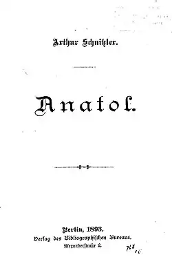 - ^ a b Schnitzler, Arthur (1893). Anatol (in German). Berlin: Verlag des Bibliographischen Bureaus [Bureau of biography publishers]. Retrieved May 3, 2014.