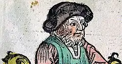 ![]() Anaximenes of Miletus as imaginatively depicted, wearing a tainia, in a 16th-century engraving from Girolamo Olgiati | |