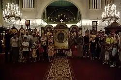 After the Ottoman conquest of the Georgian Principality of Samtskhe, of which Klarjeti was part, in the 16th century, Christianity went in decline in the area. In 1664, the merchant Amirjan Ievangulishvili brought the icon of Ancha to Tbilisi, where it was acquired by the Georgian catholicos Domenti III for 2,000 silver coins for the newly refurbished church of the Nativity of the Theotokos in Tbilisi, henceforth known as the Anchiskhati church.[3] The icon remained one of the most venerated relics of Georgian Christianity until after the Soviet takeover of Georgia it was moved to the National Art Museum of Georgia in the 1920s. The Anchiskhati church was closed down and would only be reopened in the last years of the Soviet Union in the 1980s. Since then, there have been repeated calls from the Orthodox Christians to return the icon to the church’s property.[1]