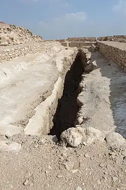 Four or five boat pits have been found at Helwan by Zaki Youssef Saad.[34] These pits were around 1st Dynasty elite tombs, and are reminiscent of the boat pits found at North Saqqara, Abu Rawash, and Abydos.[42]
