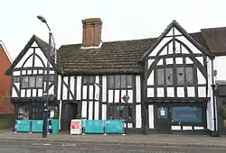 Crawley's oldest buildings surrounded the High Street, a north–south route which straddled the boundary of Crawley and Ifield parishes and formed part of the main road from London to Brighton and Shoreham on the English Channel coast.[12] Burgage plots—medieval land divisions with houses or other buildings which were rented from the Lord of the Manor—were particularly clearly defined on the east side of the High Street; the buildings within them usually faced the High Street, but plots were sometimes subdivided.[13] This is believed to have happened at the site of the Ancient Priors, where the main (15th-century) part of the building faces west on to the High Street, and the older section faces south and is hidden from view.[1][13] The latter is known to be the oldest structure remaining on Crawley High Street.[14]