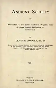 Ancient Society is an 1877 book by the American anthropologist Lewis H. Morgan. Building on the data about kinship and social organization presented in his 1871 Systems of Consanguinity and Affinity of the Human Family, Morgan develops his theory of the three stages of human progress, i.e., from Savagery through Barbarism to Civilization. Contemporary European social theorists such as Karl Marx and Friedrich Engels were influenced by Morgan's work on social structure and material culture, as shown by Engels' The Origin of the Family, Private Property, and the State (1884).