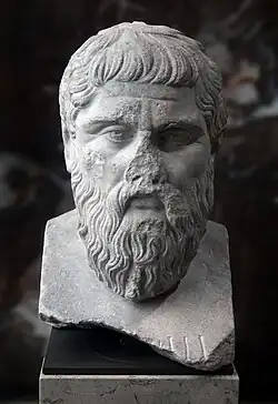 Isocrates was an influential classical Athenian orator.[48] Growing up in Athens exposed Isocrates to educators such as Socrates and Gorgias at a young age and helped him develop exceptional rhetoric.[49] As he grew older and his understanding of education developed, Isocrates disregarded the importance of the arts and sciences, believing rhetoric was the key to virtue.[50] Education's purpose was to produce civic efficiency and political leadership and therefore, the ability to speak well and persuade became the cornerstone of his educational theory.[51] However, at the time there was no definite curriculum for Higher Education, with only the existence of the sophists who were constantly traveling.[49] In response, Isocrates founded his school of Rhetoric around 393 BCE. The school was in contrast to Plato's Academy (c. 387 BCE) which was largely based on science, philosophy, and dialectic.[52]
