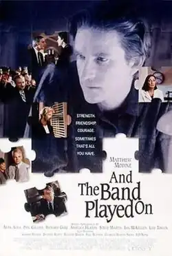 And the Band Played On is a 1993 American television film docudrama directed by Roger Spottiswoode. The teleplay by Arnold Schulman is based on the best-selling 1987 non-fiction book of the same name by Randy Shilts. The film is notable for its vast historical scope and large ensemble cast.