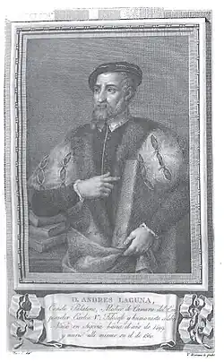Andrés Laguna de Segovia (1499–1559) was a Spanish humanist physician, pharmacologist, and botanist.