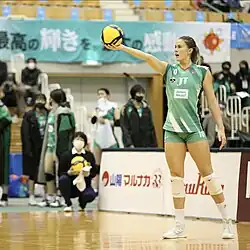 In 2019, Drews signed with JT Marvelous to play in the Japan V.League Division 1 (V1), replacing Serbia women's national volleyball team outside hitter Brankica Mihajlović.[9] Due to prior commitments with the USA national team (participation in the 2019 Women's NORCECA Volleyball Continental Championship), she missed the season's first two games. In her debut game with the team, she registered 32 points against Ageo Medics.[10] For her performance throughout the tournament, Drews was named Best Opposite and Most Valuable Player.[11]