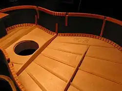 Tacchi is well known for a guitar he began building in 1989, the Coclea, which possesses unusually resonant acoustic properties. The name refers to the "cochlea" of the inner ear (coclea in Latin), the physiological place where noise is perceived as sound. The Coclea is designed on precise geometrical principles, of which its main characteristic is having top and back conceived of as portions of spheres of different radii.[6][7] Tacchi explains his inspiration for the Coclea: "From the early 80s on, I became interested in understanding the rules adopted by luthiers of the 19th century for designing the form of their instruments, a series of circles and triangles in a mathematical relation to the length of the body. Then I developed a system of spheres of differing diameters and planes in such a way so that these tangents would compose the Coclea."[8]
