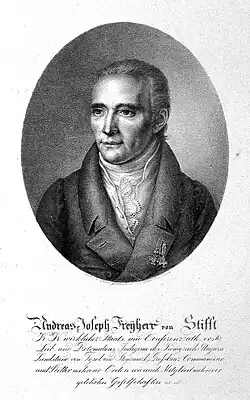 Andreas Joseph von Stifft (30 November 1760 – 16 June 1836) was an Austrian physician who influenced the teaching of medicine in Austria. He became a royal physician and was ennobled in 1814. Although considered scientifically mediocre and even as "incompetent",[1] he had great political influence that he used to change the course of medical study, enhancing the duration of study from four to five years and making a two-year clinical practice a condition for receiving a degree.