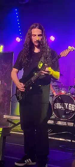 He was 10 when he started to listen to his parents' records of the Beatles, Roberto Carlos and Tonico & Tinoco.[1] He received his first acoustic guitar from his grandmother and later won a second guitar at a game of Bingo.[2] In his early adolescence, Kisser started to play acoustic guitar first learning basic chords from the Brazilian popular music repertoire and later on classical pieces. A friend then introduced Kisser to hard rock with bands like Queen and Kiss which had a great influence on him. In 1983, he went to see Kiss live in São Paulo and his father took him to Rock In Rio in 1985 to see AC/DC.[3] Kisser eventually got his first electric guitar, a Giannini-Supersonic, and an overdrive pedal. Kisser's first guitar was purchased for him by his mother.[4] Some of his major influences consisted then of Eric Clapton, Jimi Hendrix, Steve Howe, Tony Iommi, Ritchie Blackmore, Jimmy Page and Randy Rhoads.[5]