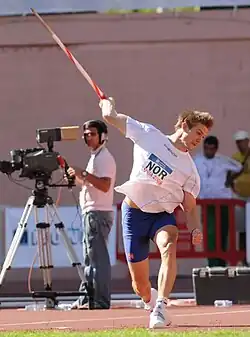 Andreas Thorkildsen (born 1 April 1982) is a retired Norwegian track and field athlete who competed in the javelin throw. He was the Olympic Champion in 2004 and 2008, European Champion in 2006 and 2010, and World Champion in 2009. He is the first male javelin thrower in history to simultaneously be European, World and Olympic Champion. He was also a three-time silver medalist at the World Championships, placing second in 2005, 2007 and 2011. His personal best of 91.59 m, set in 2006, is the Norwegian record.[1]