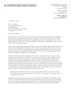 On November 7, 2019, Bakaj sent a letter to the White House warning President Trump to "cease and desist" calling for the public disclosure of the whistleblower's identity and "engaging in rhetoric and activity that places the whistleblower and their family in physical danger." He said the president would be legally and morally liable if anyone were to be "physically harmed as a result of his, or his surrogates', behavior."[25]