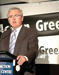 Wilkie became a member of the Australian Greens by 2004, and stood as their candidate for the seat of Bennelong in that year's federal election, running against sitting Prime Minister John Howard.[11] He was a supporter of the 'Not happy, John!' campaign which ran during the election campaign.[20] Polling 16.37% of the primary vote, Wilkie achieved the fifth-highest vote percentage for a Greens candidate across the nation at the time. This result was a considerable increase from the Greens' previous election result in Bennelong of 4.03%. Although Wilkie's vote was nowhere near enough to win the seat, there was an overall swing of 3.18% against Howard, who achieved a primary vote of only 49.89%, which resulted in the seat being decided on preferences.[21]