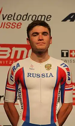 Andrey Sazanov (born 25 January 1994) is a road and track cyclist from Russia.[1] As a junior and under-23 rider he won several medals at the European Track Championships In 2015 he won as an elite the silver medal in the madison at the 2015 UEC European Track Championships in Grenchen, Switzerland.[2] On the road he won the third stage in the 2013 Baltic Chain Tour. He rode with the GM Cycling Team in 2015.
