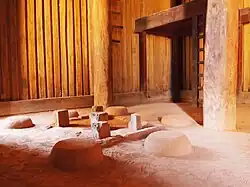 The four wives of King Andriamasinavalona whose children were not chosen to rule one of the four districts of Imerina were assigned the noble sub-caste of "Andriamasinavalona" and transferred this ranking to their descendants.[12] The king declared that members of this sub-caste would inhabit Ambatobevanja, at the southern limit of the neighborhood of Andohalo in Antananarivo, just outside the walls of the royal palace. Although not authorized to rule the kingdom, the Andriamasinavalona were deemed societal elders and gained the right to become "masters of the fief" (tompo-menakely) and construct tranomasina on their tombs.[8] They were also assigned the honor of burying deceased sovereigns and carrying out sacrifices requested by the king.[12] Outside of Antananarivo, the Zazamarolahy and the Andriamasinavalona settled throughout Imerina in the individual fiefs centered around the hill towns that they governed. In this way, nobles always lived in close proximity to the people they ruled, ensured their defense and provided for their livelihood.[8]