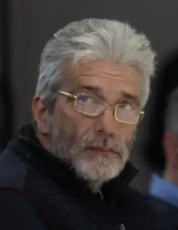 Andriy Viktorovych Kulykov (born 1957) is a Ukrainian journalist, editor, television and radio presenter, actor, media expert, and media editor.[1][2][3] He is widely known in Ukraine as the former host of Freedom of Speech (ICTV), a popular political talk show broadcast on ICTV,[4] but he also been involved with the BBC, Hromadske Radio, and other news media publications and broadcasters. Kurlykov is also a professional English-Ukrainian language Translator-referent.[5] He has been involved in the journalistic effort to explain the Russian invasion of Ukraine to English-speaking audiences.[6][7] On March 1, 2022, Kulykov was broadcasting live from his apartment when the Russian military bombed the Kyiv radio transmission tower.[8] Kulykov also demanded the release of captured Ukrainian journalist Maksym Butkevych, publicly pleading the case for his safe return to Ukraine.[9]