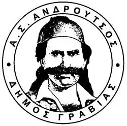 A.S. Androutsos Gravia (Greek: Α.Σ. Ανδρούτσος Γραβιάς A.S. Androutsos Gravias) was an athletic club based in the village of Gravia in Phocis, Greece. The club had been founded in 1959. Its logo and jerseys were red and white, its home games were a navy blue shirt and socks with sky blue pants, and during its away games, it had a white shirt and a sky blue pants.