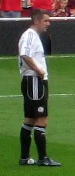 Griffin settled quickly in Newcastle and earned call-ups to the England U21 team and also played in the 1999 FA Cup final.[5] However, he picked up an injury in August 1999, ruling him out for the 1999–2000 season. He made a comeback the following season, but he again suffered a hernia injury, missing another season.[6] Griffin enjoyed something of a resurgence under Bobby Robson and made several solid performances during the 2002–03 season, including in the UEFA Champions League, when his winning goal against Juventus rekindled his side's campaign.[7][8] Injuries and a failure to get a regular place in the side saw him not offered a new contract by Newcastle at the end of the 2003–04 season.[9]