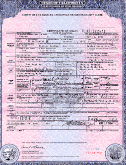 - ^ "Certificate of Death: Andrew G. Kaufman" (PDF). Autopsyfiles.org. Archived (PDF) from the original on October 5, 2011. Retrieved January 22, 2017.
