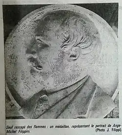 The Indo-Chinese Union was established by the decrees of October 1887. The colony of Cochinchina and the protectorates of Cambodia, Tonkin and Annam now came under the overall authority of the Governor-General of Indo-China.[10] The climate had proved too much for Filippini. He died in Saigon, Cochinchina, on 22 October 1887. He was 52 years old.[2] On 23 October 1887 he was replaced by Noël Pardon as Acting Governor.[11] Filippini's body was returned to Corte and placed in a catafalque within an imposing tomb erected after a national subscription. It was discovered in 1989 that the coffin and Filippini's body had been completely destroyed by fire, and only the medallion on the coffin remained.[3]