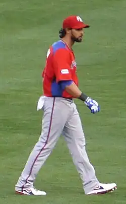 After three injury-riddled seasons and advanced metrics that suggested worsening defense, the Giants moved Pagán to left field to make way for Denard Span.[21] Pagán had not played left field since 2010, but accepted the transition, leading the team in batting average at .315 in April. A strained left hamstring kept Pagán out for thirty games, but he recovered by batting .350 for the month of June. He would go hitless in his first 10 July at-bats before his fourth home run of the season on Independence Day, already topping his totals from each of the prior two seasons. Pagán finished the season with a .277 batting average and a career-high 12 home runs in 495 at-bats, while seeing the highest percentage of fastballs of all MLB hitters (66.7%).[22]