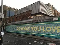 On Islington High Street, the station provides access to several nearby Off West End or Fringe theatre venues including the Old Red Lion Theatre, Sadler's Wells Theatre, the King's Head Theatre and the Almeida Theatre.[23] It is the nearest station to City University's main campus, Chapel Market,[23] and the antiques market and dealers of Camden Passage. Between Angel and Old Street is the disused City Road station.[15]