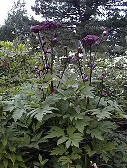 Angelica gigas, also called Korean angelica,[1] giant angelica, purple parsnip, and dangquai, is a monocarpic biennial or short lived perennial plant from Korea and China. It inhabits forests, grasslands and banks of streams. The roots are used in traditional Chinese medicine.