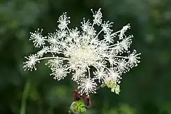 It is a herbaceous perennial plant growing to 1–2 m tall with tripinnate leaves up to 1 m long, the leaflets being 5–10 cm long. The flowers are white, produced in large umbels.