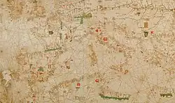 In many ways, the Dulcert 1339 map is very similar to the 1325 Dalorto map.[16] On the other hand, the portolan's keys and legends are written in Latin, and it contains features not usually found on Genoese or Venetian portolans.[1][17]